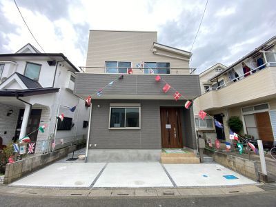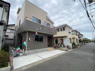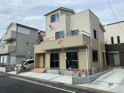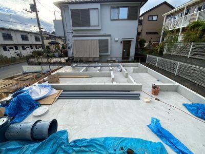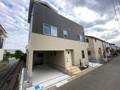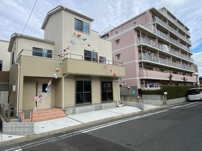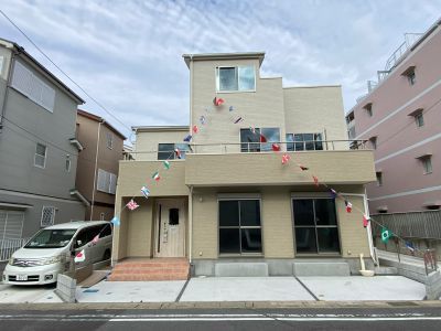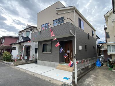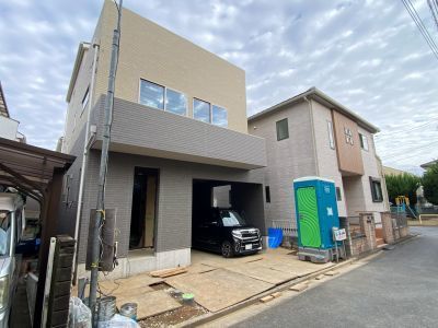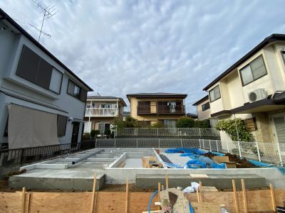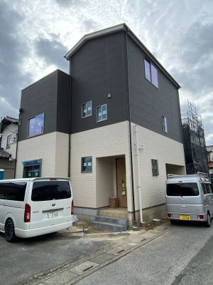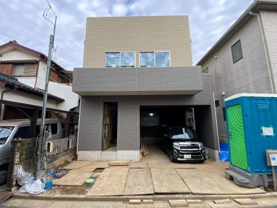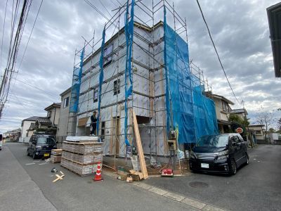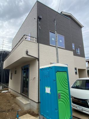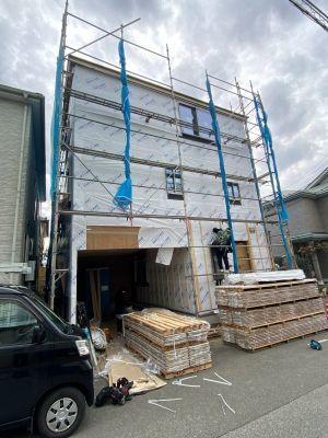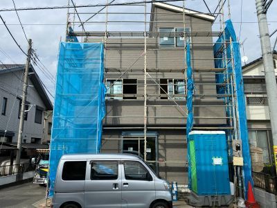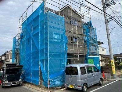 外壁はほぼ完了です。雨樋と屋上水栓はこれからです。