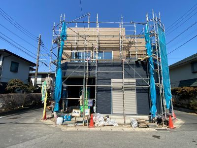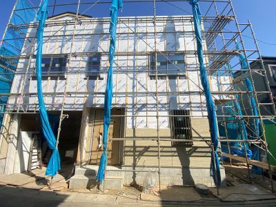 外壁工事も並行して進行中